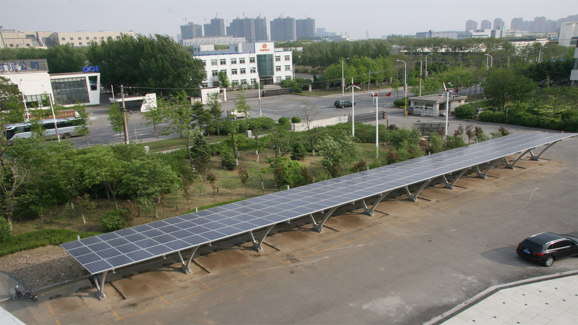 普通停車棚停車的功能,在停車棚頂太陽能光伏車棚是未來的一個發展方向,其發展前景十分廣闊。部鋪裝太陽能電池板將太陽能電池板與建筑屋頂相結合,既起到了發電的作用,還起到了隔熱﹑防雨﹑遮陽的功能,日常生活中汽車等交通工具的增多,使得太陽能光伏車棚越來越多地出現在我們的身邊。太陽能光伏車棚從字面上理解就是太陽能光伏發電加上車棚,實際上由支架系統和光伏系統組成,為人們打造便利的停車場地的同時能有效利用太陽能發電。太陽能光伏車棚的眾多優點是其得到推廣的重要原因。